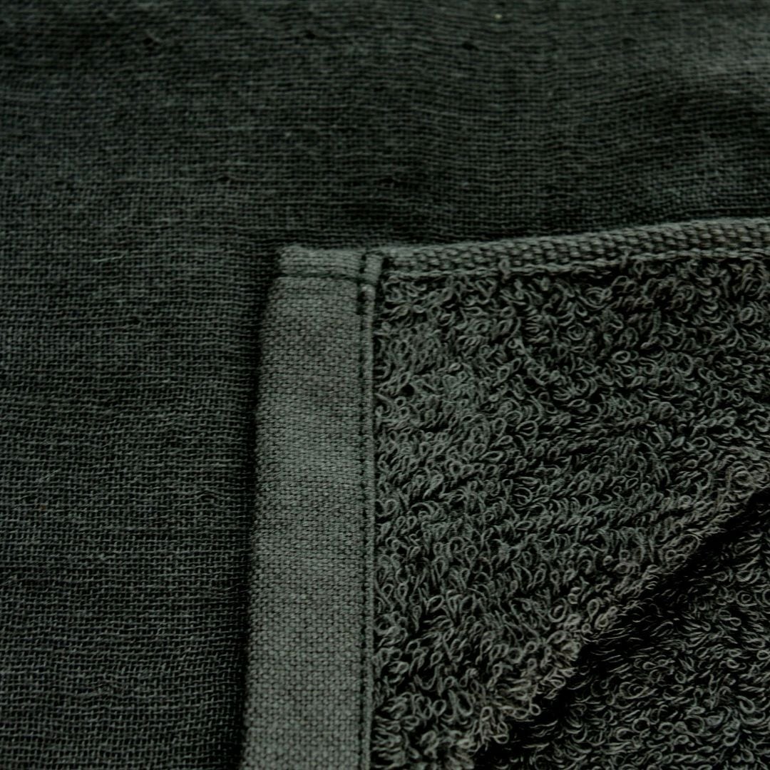 「よく吸ってすぐ乾くスポーツタオル(ブラック)」は今治タオルブランド認定のスポーツタオルです。おもて面はサラサラしてさわやかなガーゼ生地。うら面は優しく包み込むふわふわのパイル生地。この仕様により良質な肌触り・軽さ・速乾性・吸水性のすべてを実現しました。